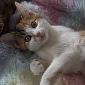 The Turner Classic kittens shine with classic charm, and Tippi Hedren is the gentle beauty of the trio. This calico sweetheart makes tiny air biscuits the moment she’s touched and rolls onto her back to show her belly in complete delight. She has a soft, tender way about her and loves to nap on her people, happily settling in like she’s known you forever. Tippi can be a bit shy with new faces at first, but she warms up with gentle play and quickly reveals her sweet, loving personality. She enjoys toys, cuddles, and being near her trusted humans. Tippi must be adopted with another kitten or to a home with other young, playful cats.