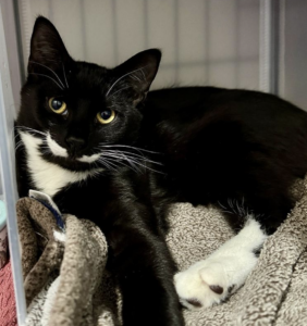 Nova is a gentle little star who’s just discovering how wonderful indoor life can be. Once a community kitten, she’s quickly learned that cozy beds, warm heating pads, and kind humans are where the magic happens. She may be a bit shy at first, but give her a quiet moment and a soft approach, and she melts right into your hand. In fact, when you stop petting her, Nova pops right out of her comfy spot to ask for more — a sure sign that a devoted cuddle bug is just waiting to shine. With a little patience, she’s going to be someone’s constant companion. Nova loves to play, especially with string toys, and she’s always happy to indulge in a fun new toy or a tasty treat. She’s wonderfully observant too — you’ll often find her perched by the window or watching her people with bright, curious eyes. She came inside with her brother Cosmo, and the two share a sweet bond full of playtime and snuggles. They enjoy each other’s company and are also very interested in making new feline friends. If you’re looking for a soft-hearted, blossoming kitten who will reward your love with loyalty and affection, Nova is ready to light up your home. ***Nova must be adopted with her brother Cosmo OR to a home that already has another young cat or kitten.***
