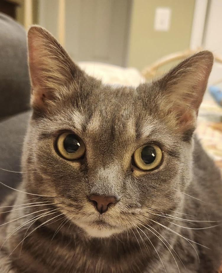 Fancy Schmancy may have a glamorous name, but she’s a down-to-earth sweetheart who simply loves the quiet comforts of home. This six-year-old gray tabby beauty is as gentle as they come, with a heart full of love and a calm, affectionate nature that makes her the perfect companion. Fancy lost her home when her beloved mom became very ill and could no longer care for her, but she’s ready to start a new chapter filled with warmth and care. She’s happiest when she’s lounging beside you during work, keeping you company as you unwind on the couch, or curling up for a cozy nap. Fancy would love to be the queen of her new castle, soaking up all the affection she deserves. Her favorite things include soft blankets, endless head skritches, and anything sprinkled with catnip, which always brings out her playful sparkle. She hasn’t been tested with other cats or dogs, so she might prefer to be your one and only. Fancy Schmancy is ready to prove that sometimes the fanciest thing of all is finding love that feels like home.
