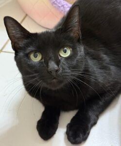 Meet Penelope, our petite panther girl with a heart as soft as her sleek black fur. She was rescued by volunteers working on TNR efforts in a DC neighborhood where several cats turned out to be far too friendly to be true outdoor community cats. It is believed Penelope and others were abandoned there, left behind by owners who could no longer keep them. Thankfully, Penelope’s luck changed when she found herself in a warm and loving foster home. Once she realized she was safe, Penelope’s sweet personality blossomed. She loves gentle pets, head boops, and will greet you with the most endearing little meows for attention. Her tail wiggles with excitement when she is happy, and she even gives “tail hugs” by wrapping it around your arm as you pet her. Though she is a gentle soul, she also has a playful side and loves a good game with a feather wand or a catnip mouse. At just about a year old, Penelope is the perfect mix of affectionate companion and playful young cat. She tested positive for Feline Leukemia (FeLV), which was confirmed with a more comprehensive test. Penelope is healthy, active, and ready to live a full and happy life. She will need to be an only cat or join a home with other FeLV+ kitties, and she is more than happy to be the star of the show. Penelope has so much love to give and is ready to find her forever family who will see her for the beautiful, loving girl she is.
