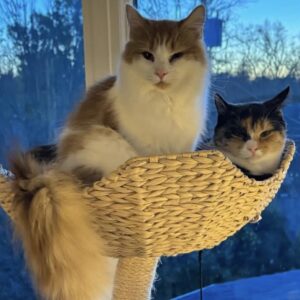 Clair de Lune and Soleil are a bonded pair of 1.5 year old girls who brighten every room with their gentle, loving energy. These two had a tough start surviving outdoors but their sweet personalities quickly shined through once they were safe. It was clear from the beginning that they were inseparable. Lune is soft and thoughtful like the moonlight she is named for, while Soleil is bold and sunny with a playful spark. They adore each other and are often found walking side by side with tails intertwined. They enjoy wand toys, cozy window perches, and being near their people. They have also blossomed beautifully in foster care thanks to a patient and loving foster family. Both girls are FeLV positive which means they need to remain together and be the only cats in the home or live with other FeLV positive companions. They are healthy, happy, and ready for a calm home where they can continue to thrive. If you are looking for a pair of affectionate companions who will fill your home with warmth and charm, Clair de Lune and Soleil are ready to light up your life.